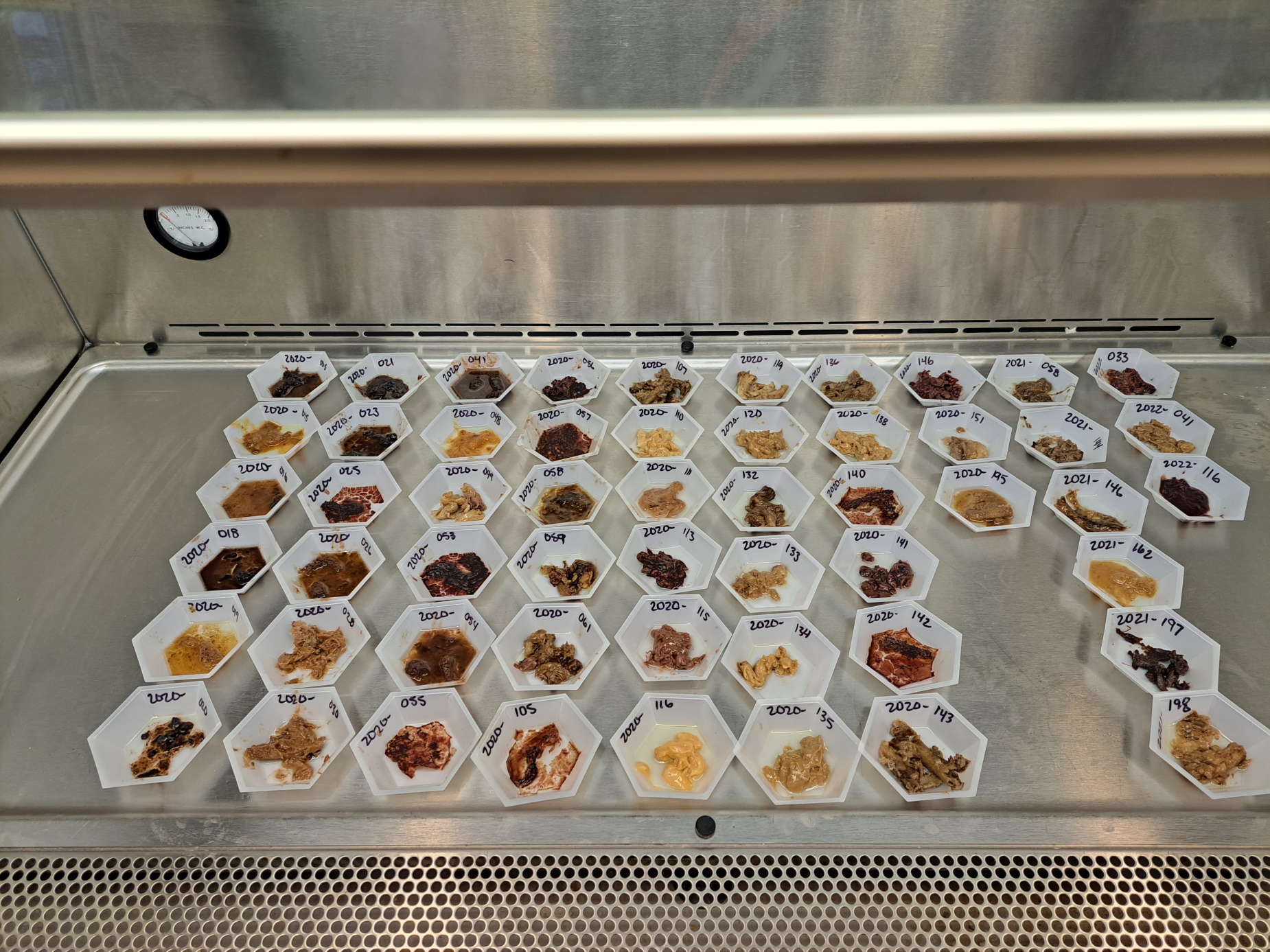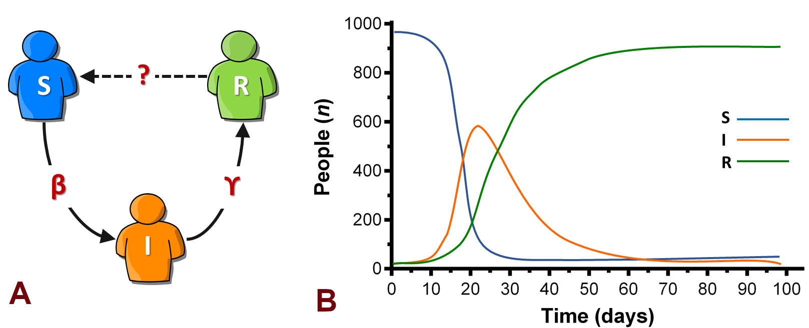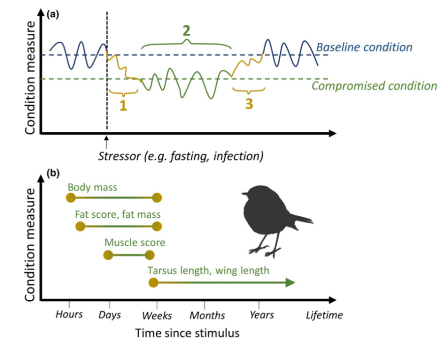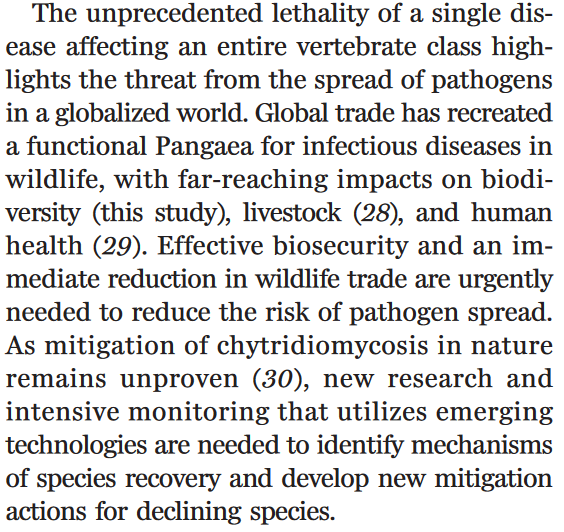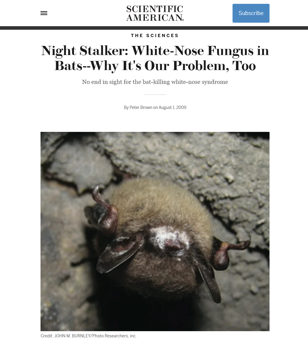 ] .subtitle[ ## EFB 390: Wildlife Ecology and Management ] .author[ ### Dr. Elie Gurarie ] .date[ ### November 4, 2025 ] --- <!-- https://bookdown.org/yihui/rmarkdown/xaringan-format.html --> .pull-left-60[ ## First, some slides on Body Condition **Fecundity** and **Survival** both depend very much on **body condition**. **Body condition** is measured in many ways, for example:. > .small[ We analysed two metrics of body condition: i) a direct subcutaneous **fat score (categorical, 1-5)**, assessed by palpating the belly-loin, with the badger laterally recumbent, and ii) a **body condition index (BCI)** estimated using a ratio-based approach for each capture: log (body mass)/log (body length). ] European badger (*Meles meles*): .pull-right-50[] ] .pull-right-40[ <br><br>  .center[[(Ross et al. 2021)](https://www.sciencedirect.com/science/article/pii/S2666900521000228)] ] --- ## Remote assessments of body condition .pull-left-30[ Field measurements made using categorical assessments. ] .pull-right-70[] --- .pull-left-30[ ## Other measurements #### Note invasive measures Kidney fat - healthy mammals Bone marrow fat - informative for non-healthy mammals ] .pull-right-70[ .center[([Sanchez et al. 2018](https://onlinelibrary.wiley.com/doi/epdf/10.1111/ele.13160))] ] --- # Considerations of measuring body condition .pull-left-40[ Short- and long-term effects of a stressor all need to be considered, and are measured differently (and have different consequences).  .center[***Any idea what this is!?***] ] .pull-right-60[] --- .pull-left[ ## Influences on body condition - **Food availability** - including (often) high seasonal variation - These relationships make **Body Condition** a good proxy for **Habitat Quality** - **Disease and parasite loads** - **Stress** - from human, predator impacts, or social interactions ] .pull-right[ ## Consequences of (poor) body condition - Lower **survival** & lower **fecundity** - Varies by age - Often - physiological energetic trade-offs between **survival** and **reproduction** (less gonadal growth, later maturation, skipped estrus) - Population level impacts - mechanisms of **Density Dependence** ] --- background-image: url("images/Chytridiomycosis.jpg") background-size: cover class:inverse #Back to Wildlife Disease --- .pull-left[ ## Why do we care? .large[ They affect humans - **Wildlife** <-> **Human** transmission They affect animals - Population = Birth + Immigration - Emigration - **DEATH** **Pathogens** are also part of the ecosystem! ]] -- .pull-right[ ## Disease Ecology is super interesting! .large[ .pull-left[ - Ecology - Behavior - Medicine - Evolution - Genetics - Immunology - Epidemiology - Modeling - Trophic Interactions ] .pull-right[ - Hosts - Intermediate hosts - Pathogens - Predator-mediation - Biotic/abiotic environments - Climate Change ]]] --- class: inverse <iframe src="https://www.youtube.com/embed/o5ECFLG2EwI?controls=0" width="900" height="600" frameborder="0" allowfullscreen> </iframe> #### "***the most interesting job in all of state service***" <!-- https://www.youtube.com/watch?v=59STc4gg4wI&ab_channel=WyomingGameandFishDepartment--> --- class: large ## Some Definitions ### **Pathogen:** infectious biological agent that causes disease or illness to its host #### .large[Bacteria | Viruses | Fungi | Other] ### **Vector:** a host that can transmit but is not itself affected by a pathogen ### **Zoonotic Disease:** a human disease of wildlife origin ### **Natural Reservoir:** population of organisms or specific environment in which an infectious pathogen lives and reproduces ### **Infectivity:** ability of a pathogen to establish an infection. ### **Virulence / Pathogenicity:** (severe or fatal cases) / (total cases) --- background-image: url("images/rabid_dog.webp") background-size: cover # .yellow[**Zoonotic diseases**] ### .yellow[(because they affect humans)] -- .pull-left[] --- ## Zoonotic diseases .pull-left-40[ **Emerging infectious diseases per decade**  ] .pull-right-60[ 60% of EID are caused by zoonotic pathogens. 72% of zoonotic EID origins in **wildlife** (vs. domesticated) origin.  **Note prominence of NE. US!** ([Jones et al. 2008](https://www.nature.com/articles/nature06536)) ] --- .pull-left-40[ ## Example: **Rabies**  .small[http://europepmc.org/article/PMC/6899062] ] .pull-right[ <br> **Rabies** is an *encephalitis* (brain inflammation) for *most* mammals. Spread by *Lyssavirus* (family of viruses) spread through saliva. The disease (cleverly!) modifies behavior to make spread via saliva more likely: - aggressiveness leading to biting. - excrutiating pain when swallowing / hydrophobia, Largely **asymptomatic** bat *reservoir*, leaks into spillover infections to, esp., domestic dogs & humans. **Effective vaccines exist!!** (in fact, developed by Louis Pasteur in 1885) ] --- .center[## Rabies vectors] .pull-left[ In the US (**where rabies is very very rare**) - almost all carriers are wild animals. Variants are (usually) species-specific. Wild animal vectors depend on local ecology.  .small[ [www.cdc.gov](https://www.cdc.gov/rabies/location/usa/surveillance/wild_animals.html) ] ] .pull-right-50[  ] --- .pull-left[ ## How to manage **Rabies**? - Dog management (stray control / muzzling / vaccination) - Vigilance - Removal of infected animals - Vaccination! (trap / release or oral)  ] -- .pull-right[  ### Including the wild ones ] --- .pull-left-60[ ## Example: **Lyme Disease**  .small[Nature.com] ] .pull-right-40[ ### Most prevalent vector-borne disease in N. America **Pathogen:** *Borrelia burgedorferi* (bacteria) Transmitted by *Ixodes* ticks, via complicated, multi-stage growth (larvae / nymph / adult). **Each stage** must independently pick up the bacteria. Does **not** affect most hosts! Only humans / dogs / some cattle. ~476,000 people / year infected and treated in US. ] ??? Uninfected larvae hatch and seek a host to feed on, which is typically a small mammal or bird, but may include larger animals. Because *Borrel