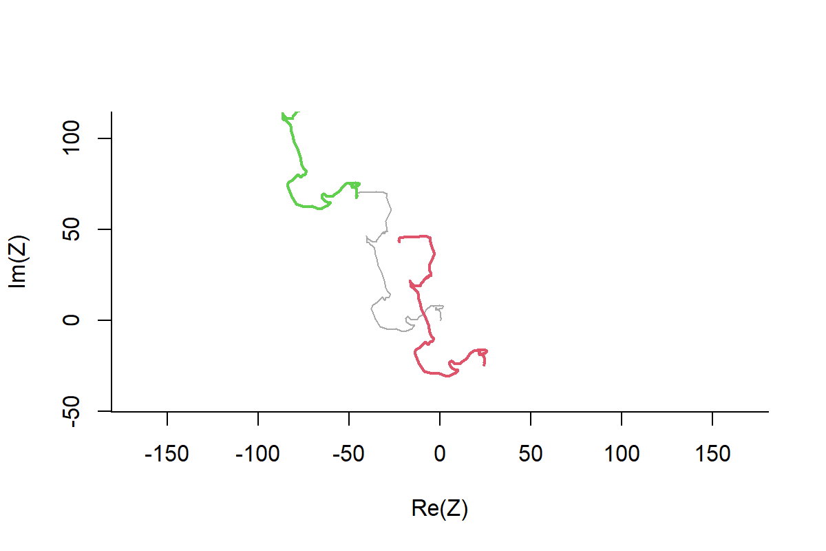 arrows(rep(0,n-2), rep(0, n-2), Re(RelSteps), Im(RelSteps), col="darkgrey")