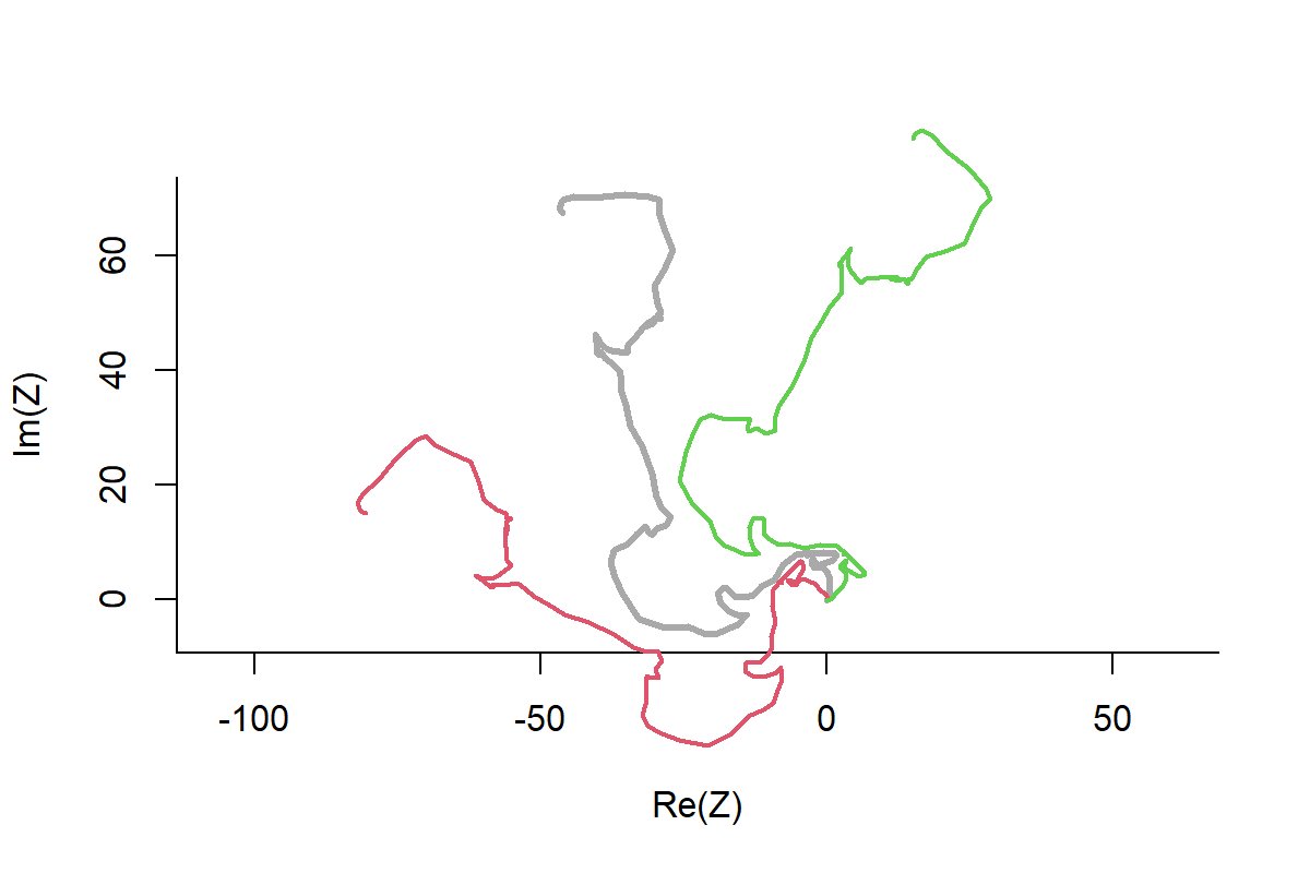 arrows(rep(0,length(Z)), rep(0,length(Z)), Re(Z), Im(Z), lwd=2, col=1:3)