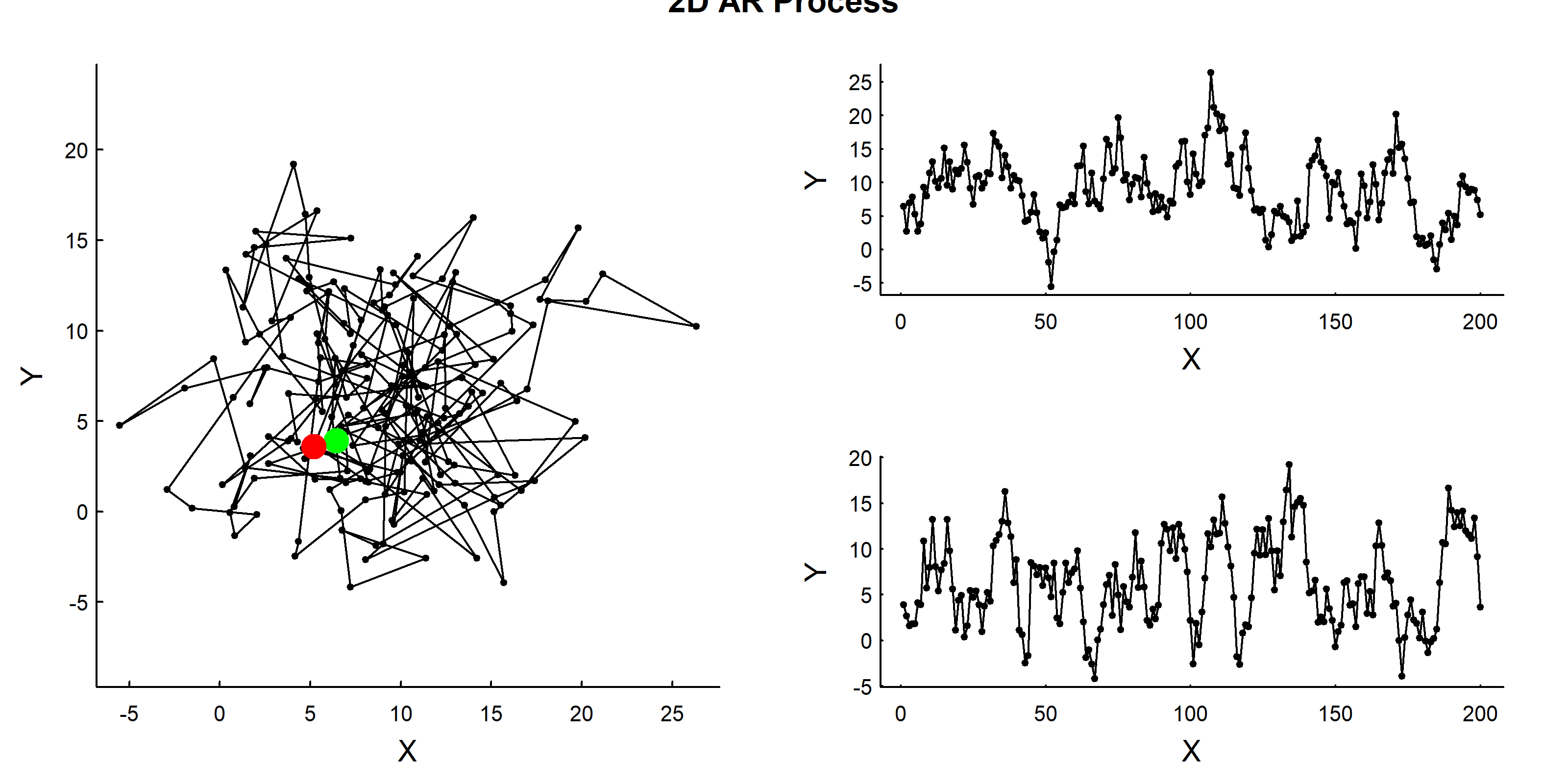 Unlike random walks that wander to infinity, autoregressive processes are spatially constrained.