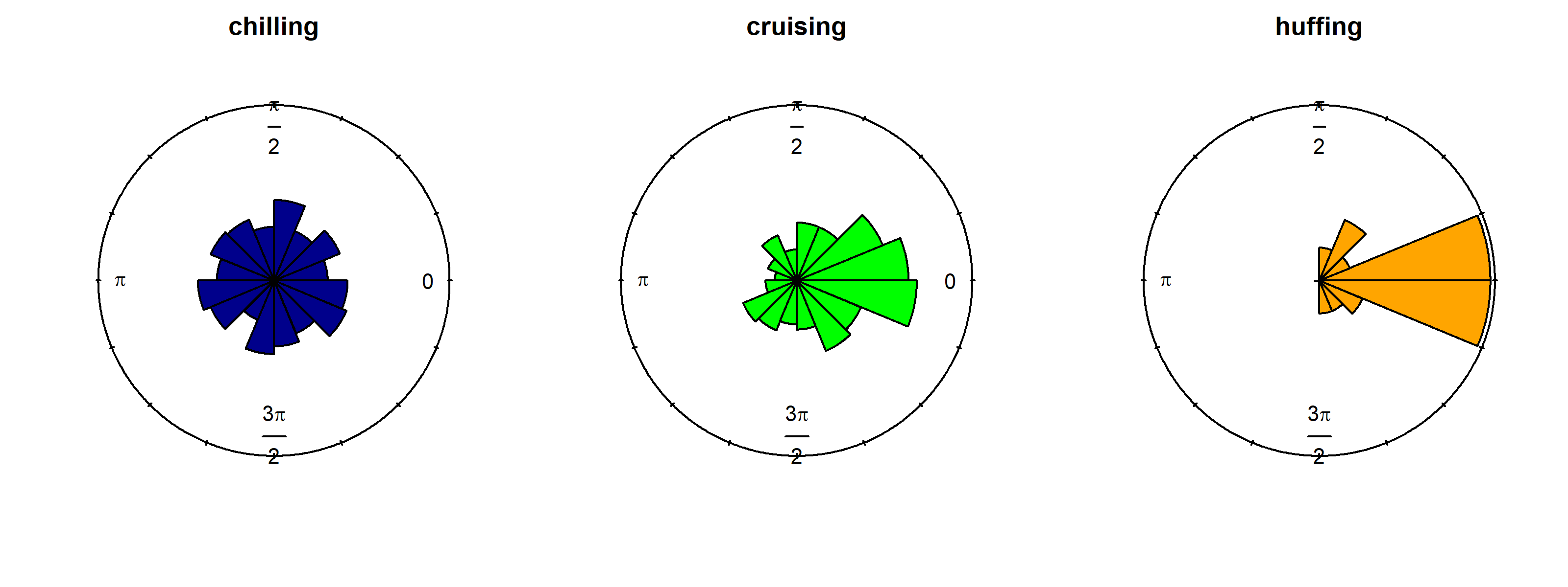 require(circular)for(iin1:3)rose.diag(thetas[State_mc==i], bins =16, col =cols[i], prop =1.5, main =rownames(M)[i])